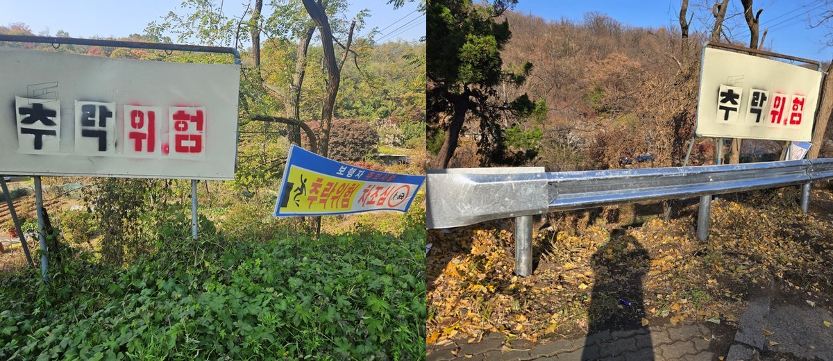 서구는 고 의원의 현장 확인 직후 공유지·사유지 여부를 검토하고, 지형 특성을 반영한 맞춤형 안전펜스 설치를 신속히 추진해 최근 공사를 마무리했다.