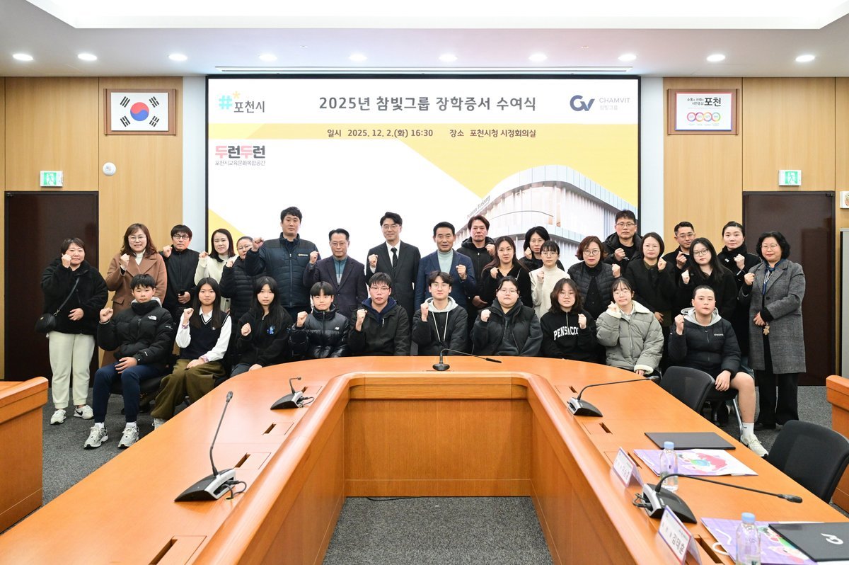 이번 수여식은 참빛그룹의 후원으로 진행됐으며, 포천 관내 중학생·고등학생·대학생 총 15명이 장학생으로 선정돼 1080만 원의 장학금을 전달받았다.