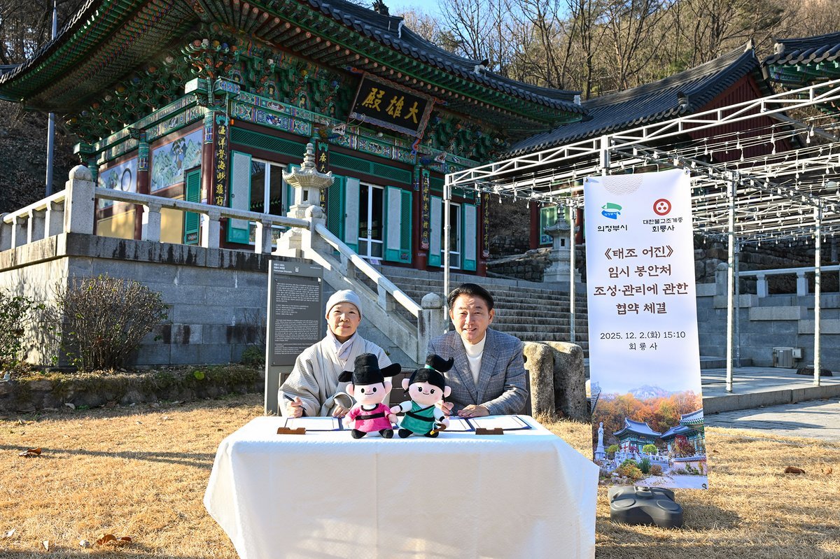 [금요저널] 의정부시는 12월 2일 호원2동 소재 전통사찰 대한불교조계종 회룡사에서 《태조 어진》 임시 봉안처 조성·관리에 관한 업무협약을 체결했다고 밝혔다.