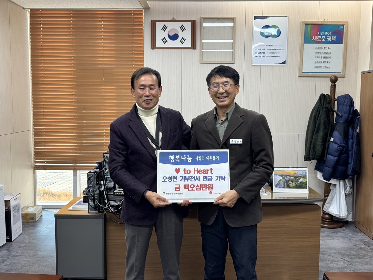 [금요저널] 평택시 오성면 행정복지센터는 지난 3일 ‘HEART to HEART 기부금 전달식’을 개최하고, 지역 내 어려움을 겪는 청소년과 이주 배경 가정을 위한 기부금 150만 원 전달받았다.