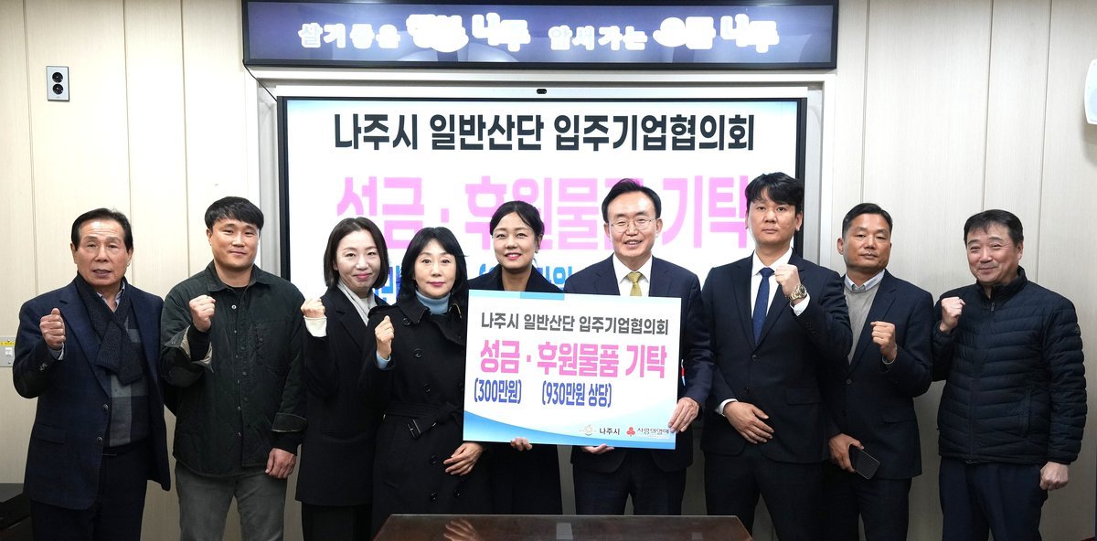 [금요저널] 전라남도 나주시는 지난 3일 나주 일반산단 입주기업협의회가 연말연시를 맞아 지역 내 취약계층 지원을 위해 ‘희망 2026 나눔 캠페인 성금’300만 원과 자체 생산한 식료품 960만 원 상당 등 총 1260만 원을 기탁했다고 밝혔다.