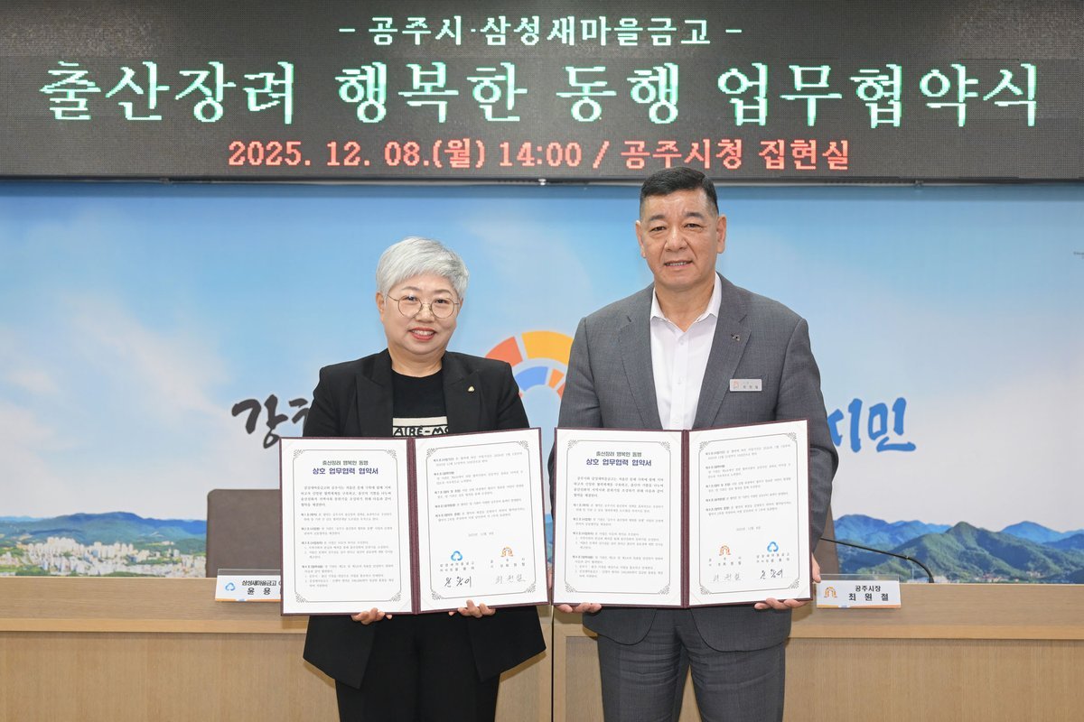 [금요저널] 공주시는 지난 8일 시청 집현실에서 삼성새마을금고와 ‘출산장려 행복한 동행’업무협약을 체결했다고 밝혔다.