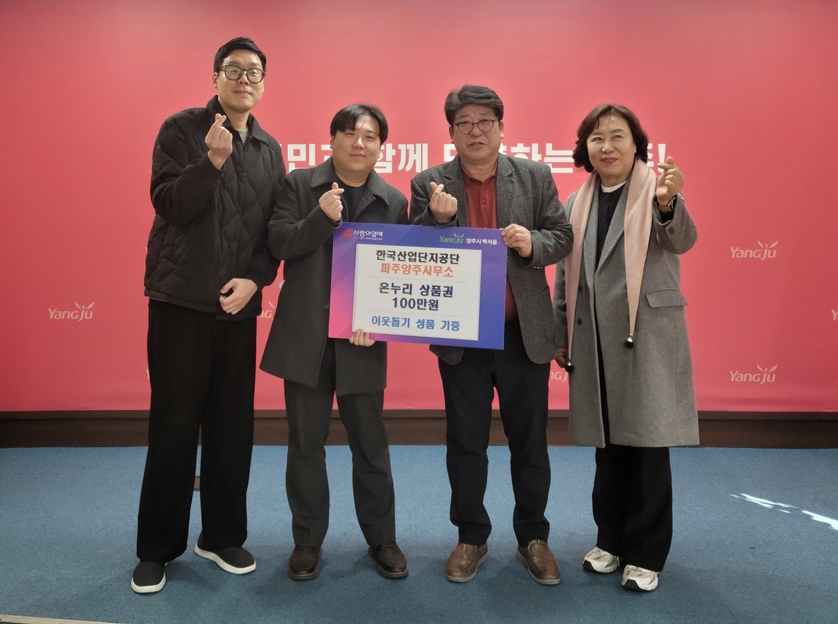 한국산업단지공단 파주양주사무소, 백석읍 취약계층에 온누리상품권 100만 원 기부 (양주시 제공)