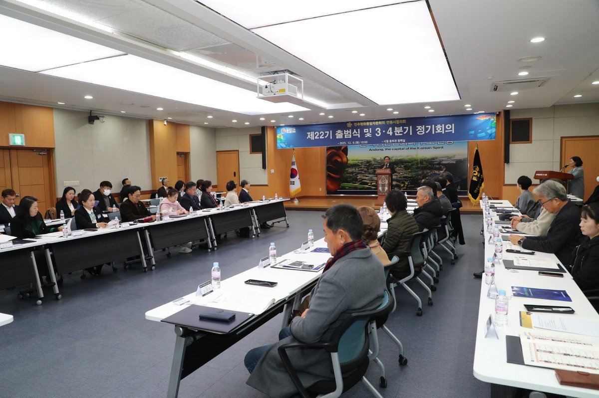 [금요저널] 제22기 민주평화통일자문회의 안동시협의회는 12월 9일 오전 10시 안동시청 웅부관 청백실에서 배용한 경북지역회의 부의장, 자문위원 등 60명이 참석한 가운데 ‘제22기 출범식 및 2025년 3·4차 정기회의’을 개최했다.