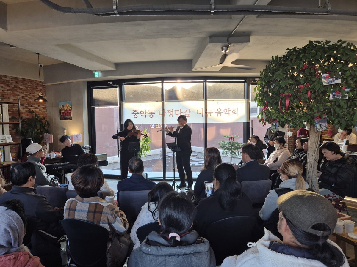 [금요저널] 공주시 중학동은 지난 9일 엘로이즈 카페에서 성탄을 앞두고 ‘다정다감 나눔 음악회’를 열었다.
