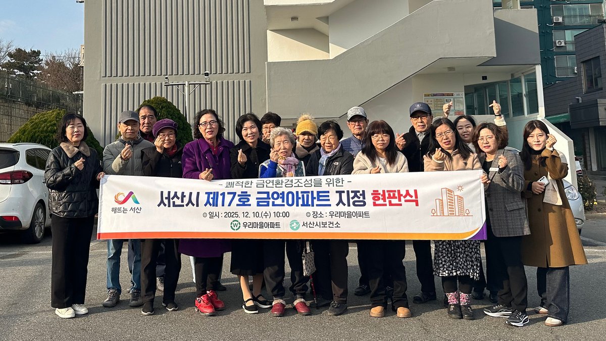 [금요저널] 서산시는 10일‘우리마을아파트’를 금연아파트로 지정하고 현판식을 개최해 공동주택 내 간접흡연을 예방하고 건강한 생활환경을 조성하겠다는 의지를 밝혔다.