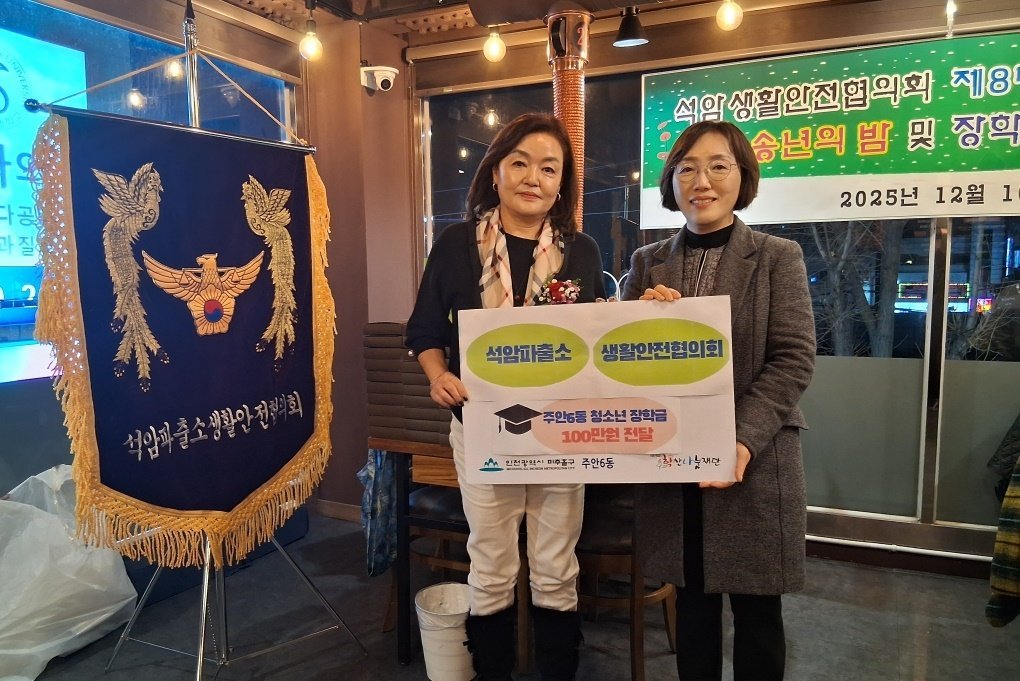 주안6동, 석암파출소 생활안전협의회로부터 ‘모범 청소년 장학금’100만 원 전달받아 (미추홀구 제공)