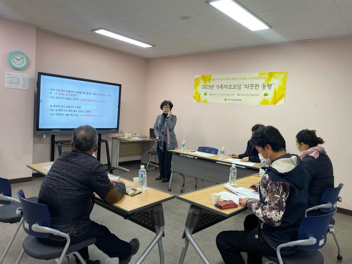 이번 가족자조모임은 정신질환자 가족이 겪는 심리적 부담을 완화하고, 지역 내 가족 지지체계를 강화하기 위해 마련된 것으로, 참여자들은 서로의 경험을 공유하며 돌봄 과정에서 느끼는 어려움에 대해 공감하는 시간을 가졌다.