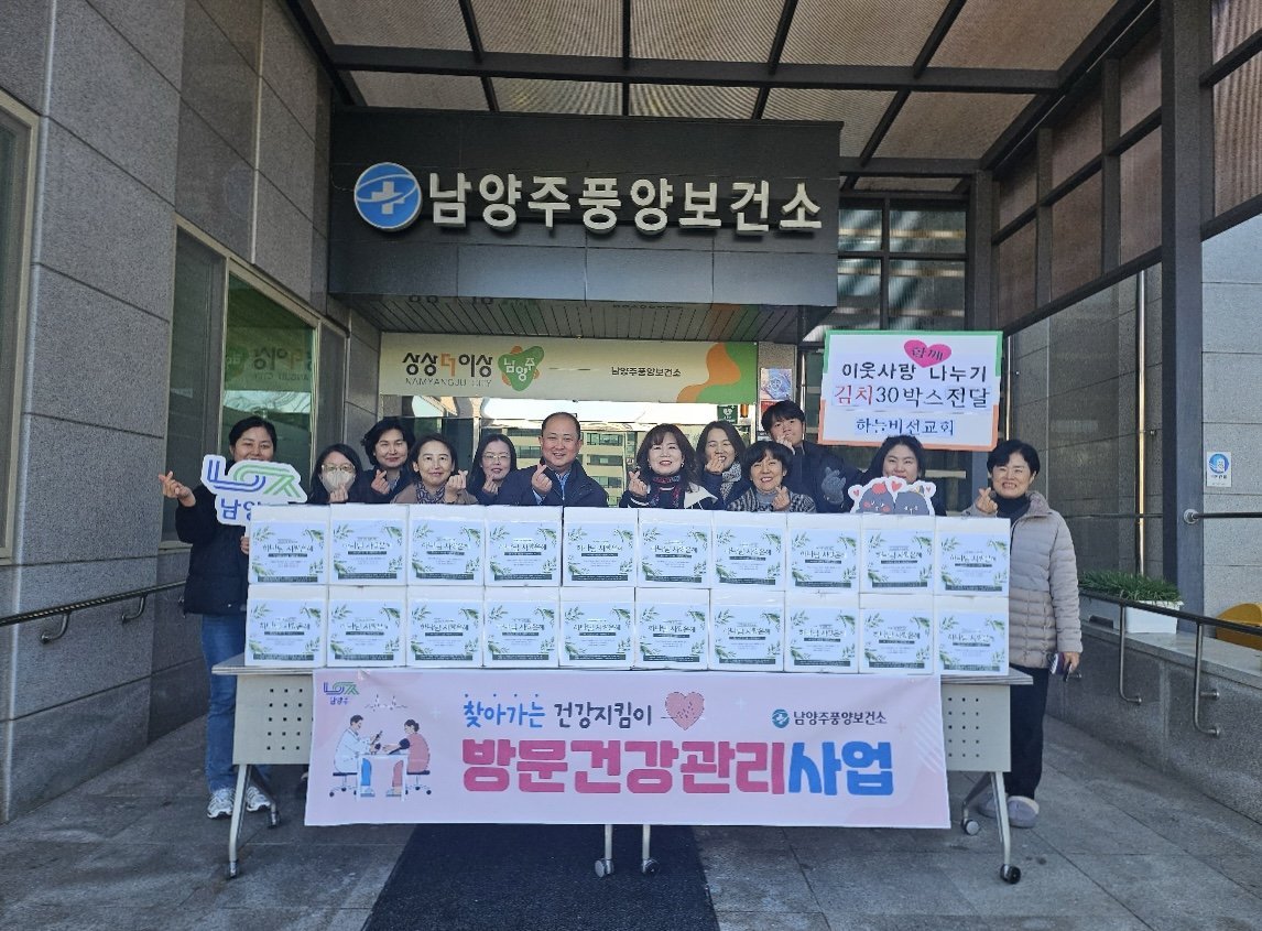 [금요저널] 남양주시는 8일 남양주풍양보건소가 오남읍 하늘비전교회에서 기부한 김장 김치 30박스를 방문건강관리사업 대상자 30가구에 전달하며 따뜻한 나눔을 실천했다고 11일 밝혔다.