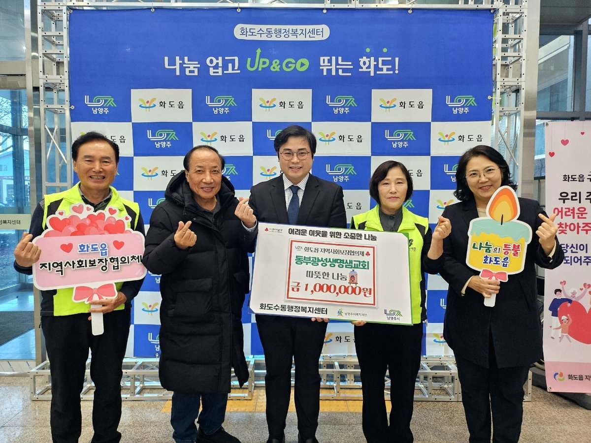 [금요저널] 남양주시는 11일 동부광성생명샘교회가 화도읍 지역사회보장협의체에 취약계층 동절기 난방비 지원을 위한 후원금 100만 원을 전달했다고 밝혔다.
