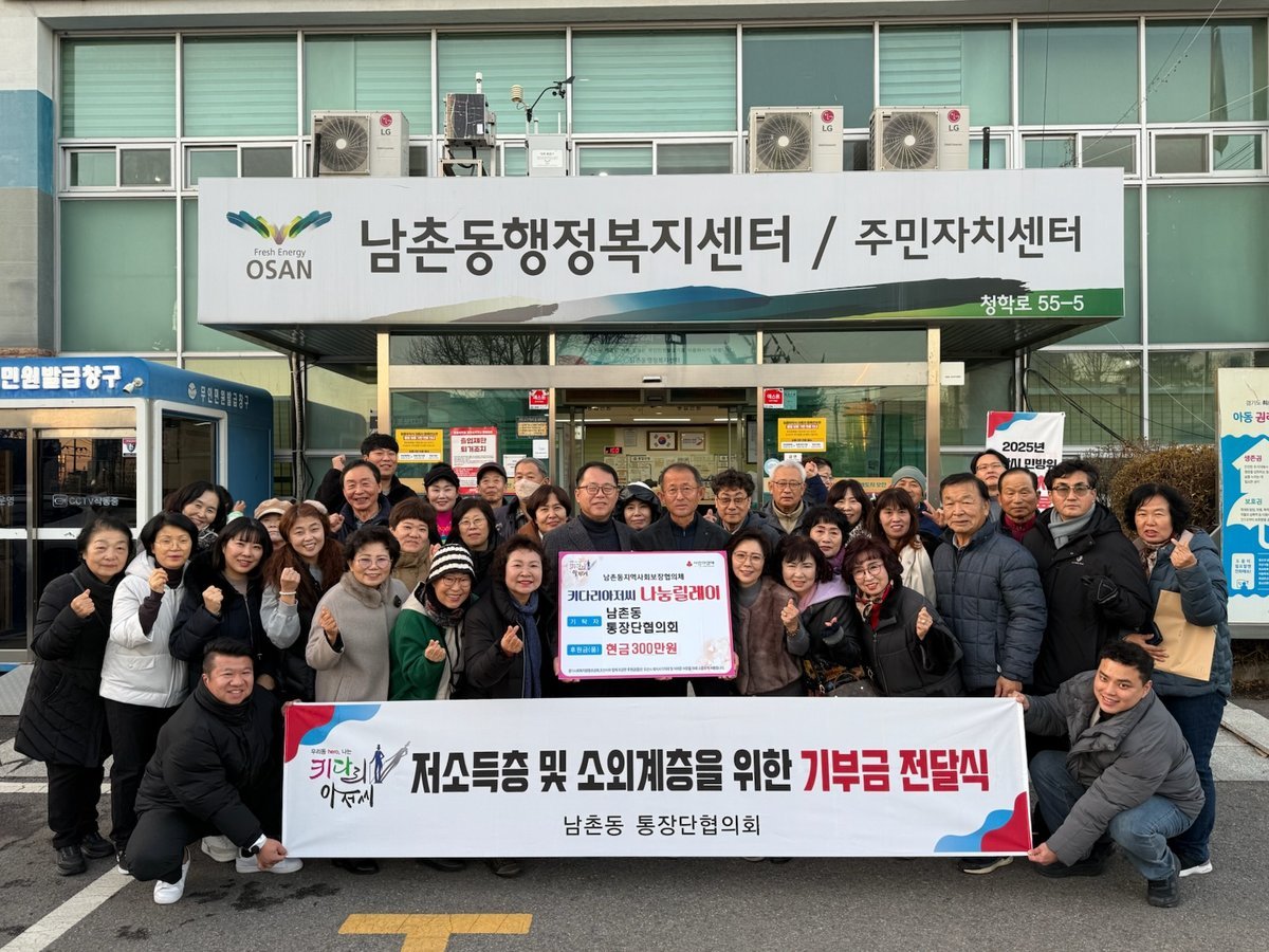 [금요저널] 오산시 남촌동행정복지센터는 지난 11일 남촌동 통장협의회가 관내 저소득층 지원을 위해 성금 300만 원을 기탁했다고 밝혔다.