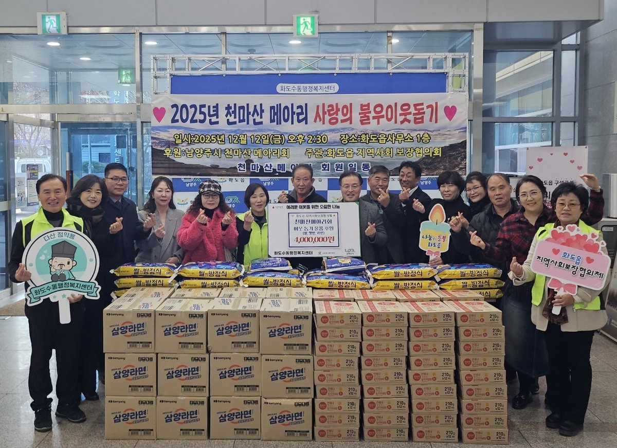 한편, 천마산메아리회는 2025년 1월 창설했으며, 올 3월 10kg 쌀 50포 물품 기부를 시작으로 지속적인 후원을 이어갈 계획이다.