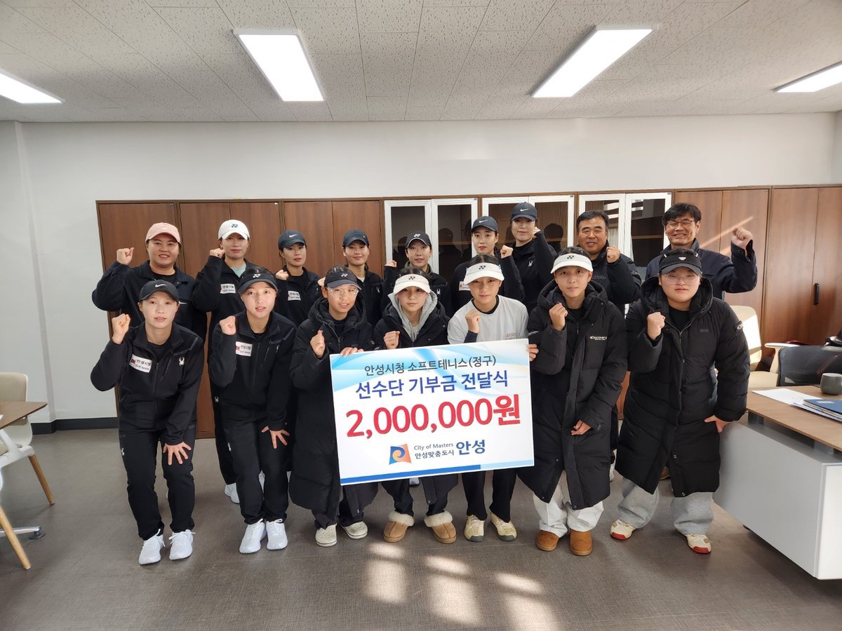 [금요저널] 안성시청 소프트테니스 선수단이 올해 겨울에도 지역사회에 따뜻한 나눔을 이어갔다. 선수단은 총 600만 원의 기부금을 전달하며 지역 인재 및 소프트테니스 후배 선수들을 지원했다.