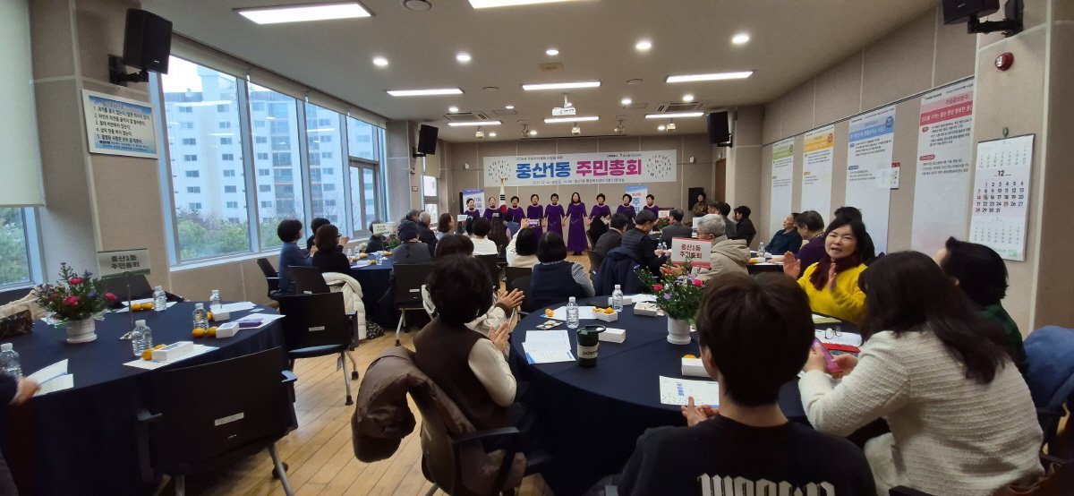 총회에는 김해련 고양특례시 시의원과 중산1동 직능단체장을 비롯해 50여 명의 주민이 참석했으며, 참석 주민들은 내년도 주민자치사업 의제에 대해 토론하며 지역 현안을 논의했다.