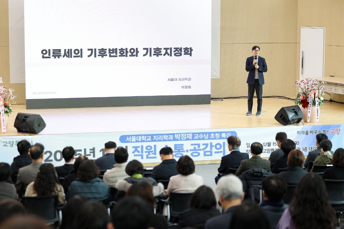 고양시, 2025년 12월 직원 소통·공감의 날 개최 - 서울대학교 지리학과 박정재 교수 초청‘기후변화와 지정학'특강 (고양시 제공)