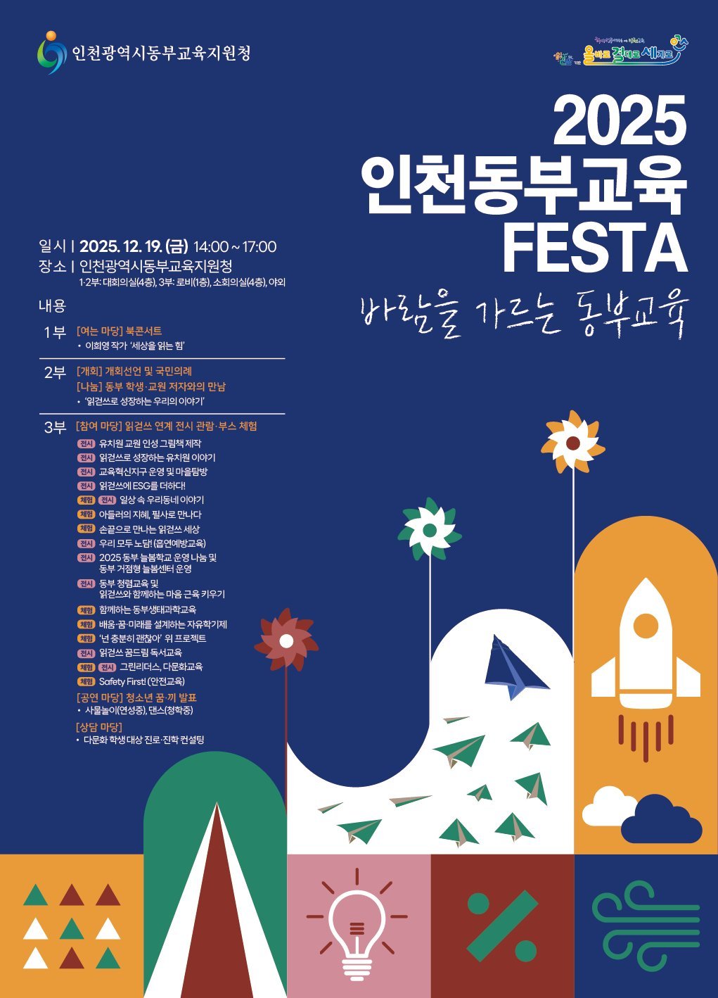 [금요저널] 인천동부교육지원청은 오는 12월 19일 동부교육지원청에서 교육공동체와 함께 한 해의 성과를 나누는 ‘2025 인천동부교육 FESTA: 바람을 가르는 동부교육’을 개최한다.