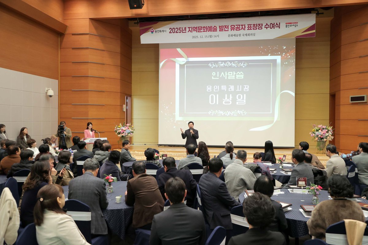 [금요저널] 용인특례시는 15일 문화예술원 국제회의실에서 ‘2025년 지역문화예술 발전 유공자 표창장 수여식’을 열었다.