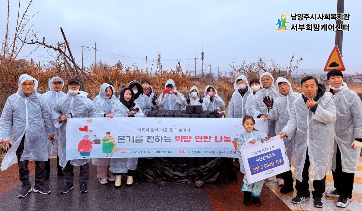 남양주시 다산은혜교회, 서부희망케어센터 통해 연탄 2000장 기부 (남양주시 제공)