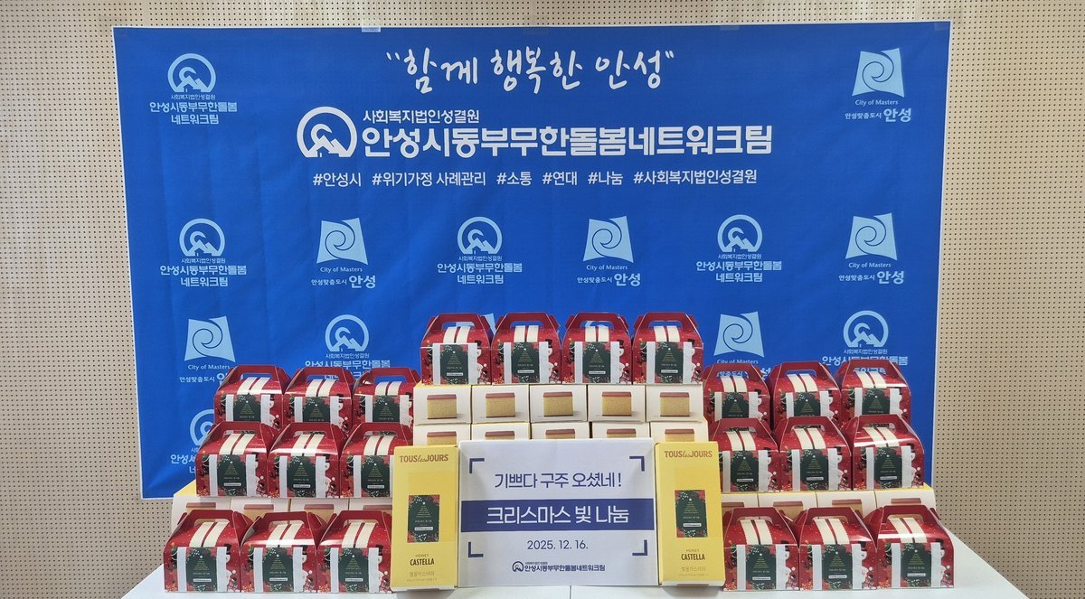 [금요저널] 안성시동부무한돌봄네트워크팀, 크리스마스 빛 나눔 행사 진행 안성시동부무한돌봄네트워크팀은 지난 16일 크리스마스를 기다리며 관내 사회복지시설 7곳과 소외계층 50가정에 「크리스마스 빛 나눔」행사를 진행했다고 밝혔다.