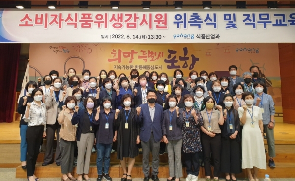 [금요저널] 포항시는 14일 시청 대회의실에서 2022년 포항시 소비자식품위생감시원 40명을 위촉하고 이들을 대상으로 직무교육을 실시했다.