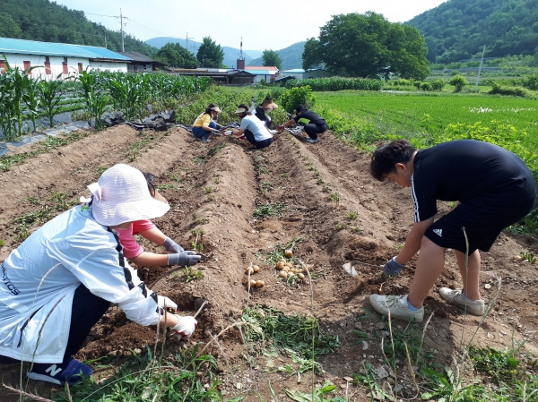 이날 멘토 4명과 멘티 4명은 1:1로 매달 4회씩 만나 군위 관내에서 제한된 활동을 하다가 관내 1388청소년지원단의 도움으로 효령 농가를 방문해 감자 캐기 체험을 했다.