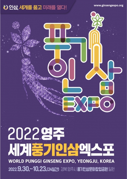 풍기인삼엑스포는 오는 9월 30일부터 10월 23일까지 24일간 500년 가삼 재배지이자 고려인삼 최초 시배지인 경북 영주시 풍기읍 일원에서 ‘인삼, 세계를 품고 미래를 열다’라는 주제로 열린다.