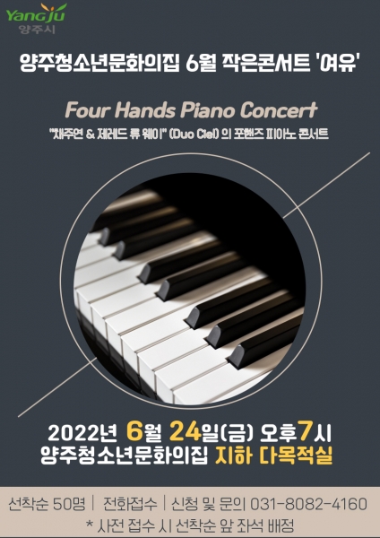 이번 공연은 I PIANO 4 HANDS 라는 주제로 ‘제레드 류 웨이’와 ‘채주연’두 명의 피아니스트가 한 대의 피아노를 연주하는 포핸즈 피아노 콘서트와 김진수 양주시음악협회장의 해설을 들을 수 있도록 구성됐다.