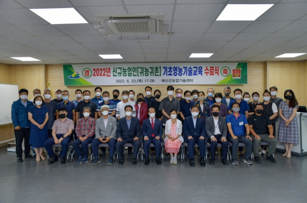 [금요저널] 예산군농업기술센터는 귀농·귀촌인들의 안정정착을 위한 ‘2022년 신규농업인[귀농귀촌] 기초영농기술 교육’ 수료식을 지난 23일 개최했다.