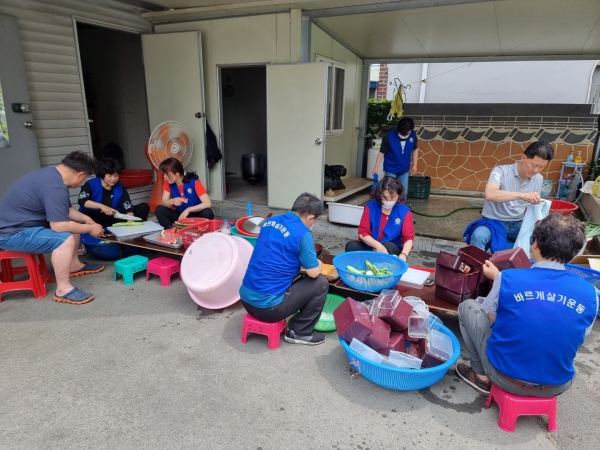 이날 더운 날씨에도 불구하고 많은 회원이 동참해 화기애애한 분위기 속에서 반찬 나눔 봉사가 진행됐다.