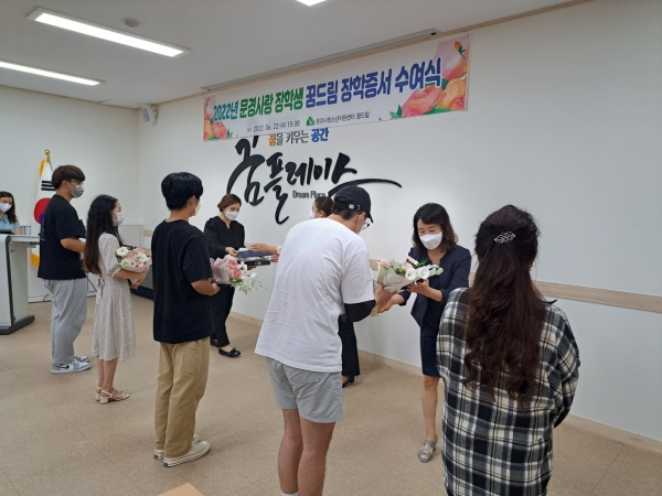[금요저널] 문경시 청소년지원센터 꿈드림은 지난 6월 22일에 문경시장학회에서 올해 신설해 문경사랑 장학생 꿈드림 부문에 선발된 학교 밖 청소년 5명을 대상으로 장학증서 수여식을 개최했다.