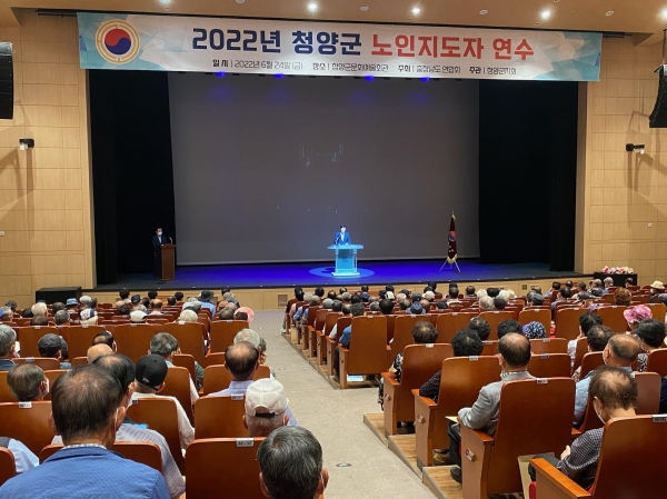 [금요저널] 청양군은 지난 24일 청양군 문화예술회관 대공연장에서 청양군 관내 경로당 회장 308명이 참석한 가운데 2022년 노인지도자 연수교육이 실시했다고 밝혔다.