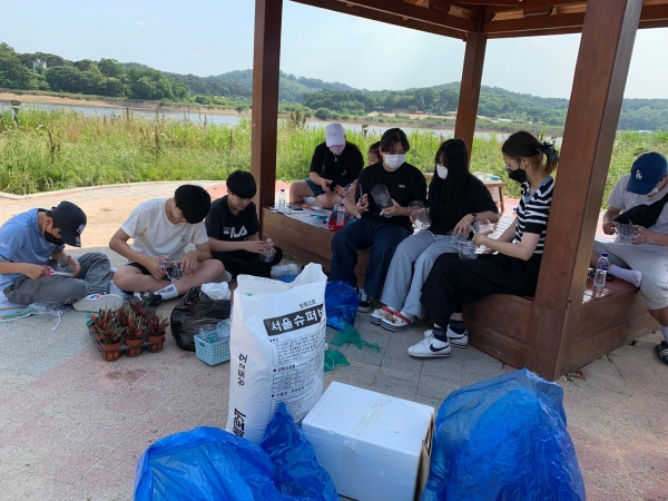 먼저 업사이클링 활동은 재활용품에 디자인이나 활용도를 더해 가치를 높인 제품으로 재탄생시키는 프로그램으로 페트병을 이용한 ‘행잉플랜트 만들기’, 플라스틱 커피컵과 아이스팩을 활용한 ‘디퓨저 만들기’ 활동이 있다.