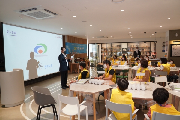 발대식은 천안시장의 격려사와 포스코모빌리티솔루션 대표의 후원금 전달, 봉사자 기초소양교육 및 이엠흙공 만들기 순으로 진행됐다.