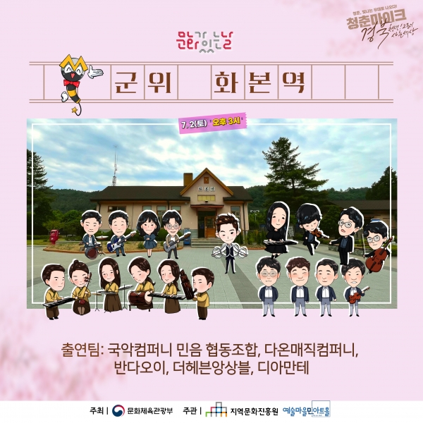 [금요저널] 군위군 화본역에서 오는 7월 2일 오후 3시에 2022년 문화가 있는 날, 경북권 청춘마이크 공연이 펼쳐진다.