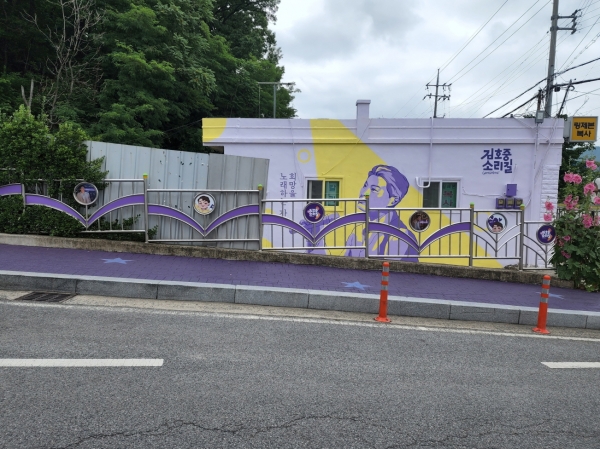 이에 따라 교동 연화지와 김천예술고등학교까지 김호중소리길을 연계하기 위해 거리의 노후화된 공중전화부스, 버스승강장, 거리 휀스 등을 보라색으로 새로이 단장했고 임시주차장 등에 벽화를 조성했다.