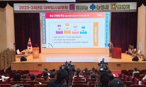 화랑마을 전시관 기파랑관에서 진행된 설명회는 1부 최승해 입시전문가의 특강, 2부 이만기 유웨이교육평가연구소장의 특강 등으로 진행됐다.