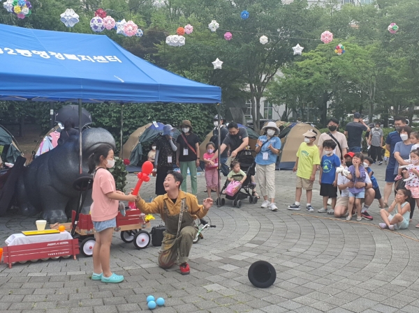 이날 어린이가 직접 물건을 파는 나눔장터를 비롯해, 페이스페인팅, 천연비누 만들기, 소원 팔찌 만들기, 디퓨저 만들기 등 체험 행사가 진행됐으며 부대행사로 준비된 마술공연은 나들이 나온 가족에게 즐거운 시간을 선사했다.