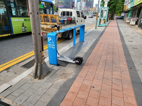 [금요저널] 전동킥보드 거치대가 안양의 도심가 곳곳에 설치돼 보행환경이 향상될 것으로 보인다.