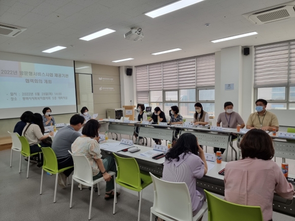 [금요저널] 평택시는 지난 28일 2022년 방문형서비스사업 제공기관과 연계·협력회의를 사회복지협의회 5층 대회의실에서 가졌다.