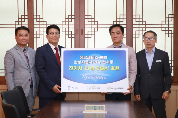 [금요저널] 메르세데스-벤츠 한성자동차 안성전시장에서는 지난 28일 평택시를 방문해 평택시 장애인복지시설에 전기차 ‘더 뉴 EQA’를 전달했다.