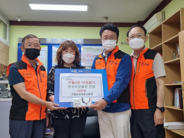[금요저널] 인천시 남동구 구월4동은 최근 구월남성의용소방대로부터 이웃돕끼 성금으로 온누리상품권 50만원을 기탁받았다고 29일 밝혔다.