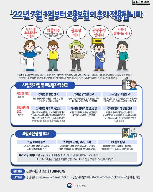 또한 사업주 대상으로 고용보험 시행 관련 맞춤형 교육 및 안내 등을 지속해서 실시하고 온·오프라인 홍보도 병행해 종사자들과 일반 국민에게도 적극적으로 제도를 알릴 예정이다.