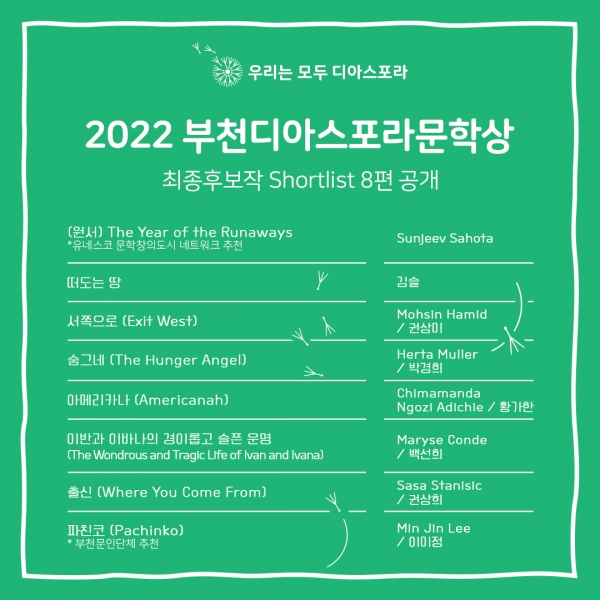 [금요저널] 부천시가 ‘2022 부천디아스포라문학상’ 최종후보작 8편을 공개했다.