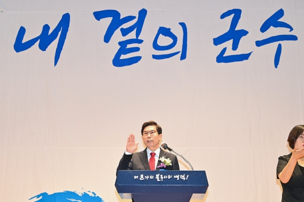 이어 김 군수는 “안으론 가족을 보살핀다는 마음가짐으로 군민을 섬기고 밖으로는 철두철미한 전문 경영인의 자세로 영덕군의 재도약을 위해 최선을 다해 인구 감소와 경기침체, 재정자립 악화를 기필코 막아내겠다”고 포부를 밝혔다.
