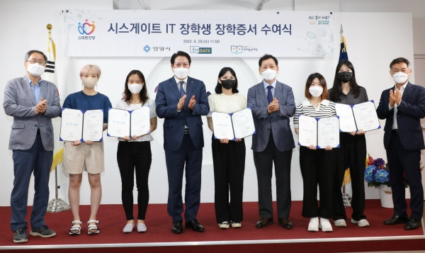 [금요저널] 안양시 인재육성재단이 지난달 29일 2022년도 시스게이트 IT 장학생 장학증서 수여식을 개최했다고 전해왔다.