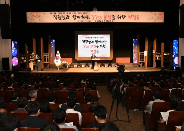 [금요저널] 문경시는 제9대 신현국 문경시장 취임을 맞이해 7월 1일 문화예술회관 대공연장에서 ‘YES 문경’을 위한 신현국 문경시장과 직원들의 첫만남 대화시간을 가졌다.