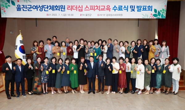 [금요저널] 울진군은 지난 7월 1일 여성의 자기 개발과 리더 육성을 위한 울진군여성단체회원 리더십스피치 교육과정 수료식 및 발표회를 개최했다.
