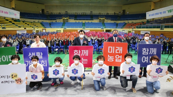 이날 대회는 식전공연과 생활개선회 활동 영상물 상영, 우수회원 시상, 대회사, 회원 모두가 한마음 한뜻을 담아 도약의 메시지를 전하는 비전선포 퍼포먼스 순으로 대회식을 진행했다.