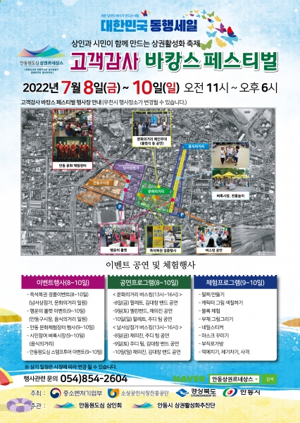[금요저널] 안동시는 7월 8일부터 10일까지 사흘간 상권 활성화를 위한 ‘고객감사 바캉스 페스티벌’을 개최한다.