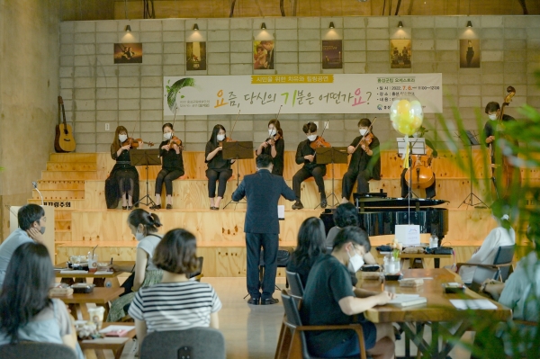 [금요저널] 지난 6일 홍성복합문화창업공간 ‘잇슈창고’에서 지역의 임산부를 위해 개최된 홍성군립오케스트라의 태교 음악회가 큰 호응을 얻었다.
